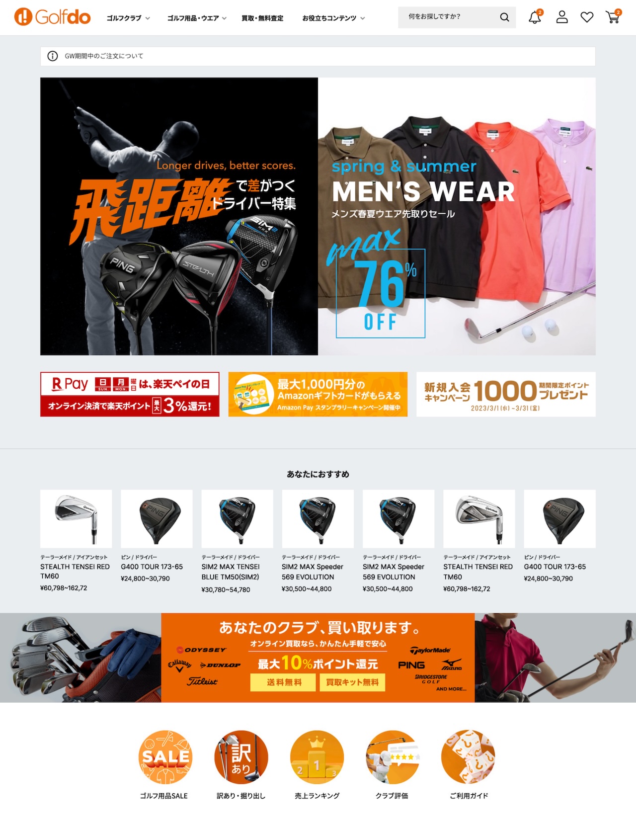 中古ゴルフクラブを販売するゴルフ・ドゥのWEBサイトです。
